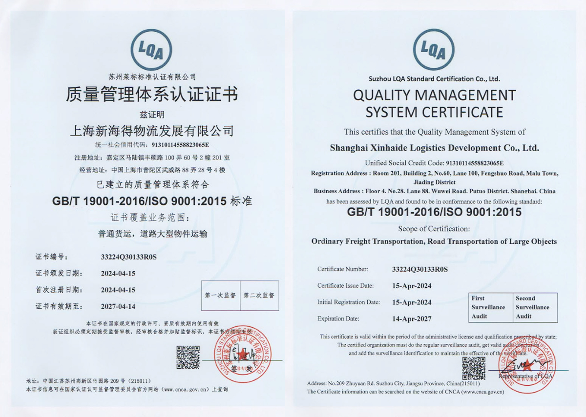 新海得物流嚴(yán)格按現(xiàn)代物流操作流程進行標(biāo)準(zhǔn)化運作。已通過國際質(zhì)量管理體系ISO9001:2015體系認(rèn)證。運用健全的客戶服務(wù)管理系統(tǒng)、車輛管理系統(tǒng),財務(wù)管理系統(tǒng)。在查詢、監(jiān)控、追蹤、結(jié)算等方面與客戶做到無縫對接,打造了專業(yè)高效的客戶服務(wù)體系。